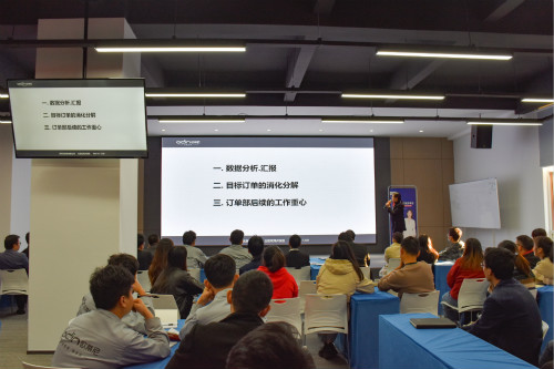 會議伊始,歐蒂尼營銷總監(jiān)張總根據(jù)前后端數(shù)據(jù)的梳理,就目前公司現(xiàn)狀以及快速發(fā)展情況進(jìn)行了概括分析,強(qiáng)調(diào)生產(chǎn)團(tuán)隊一定要確保交貨周期,并對接下來的11-12月份的工作進(jìn)行安排部署。