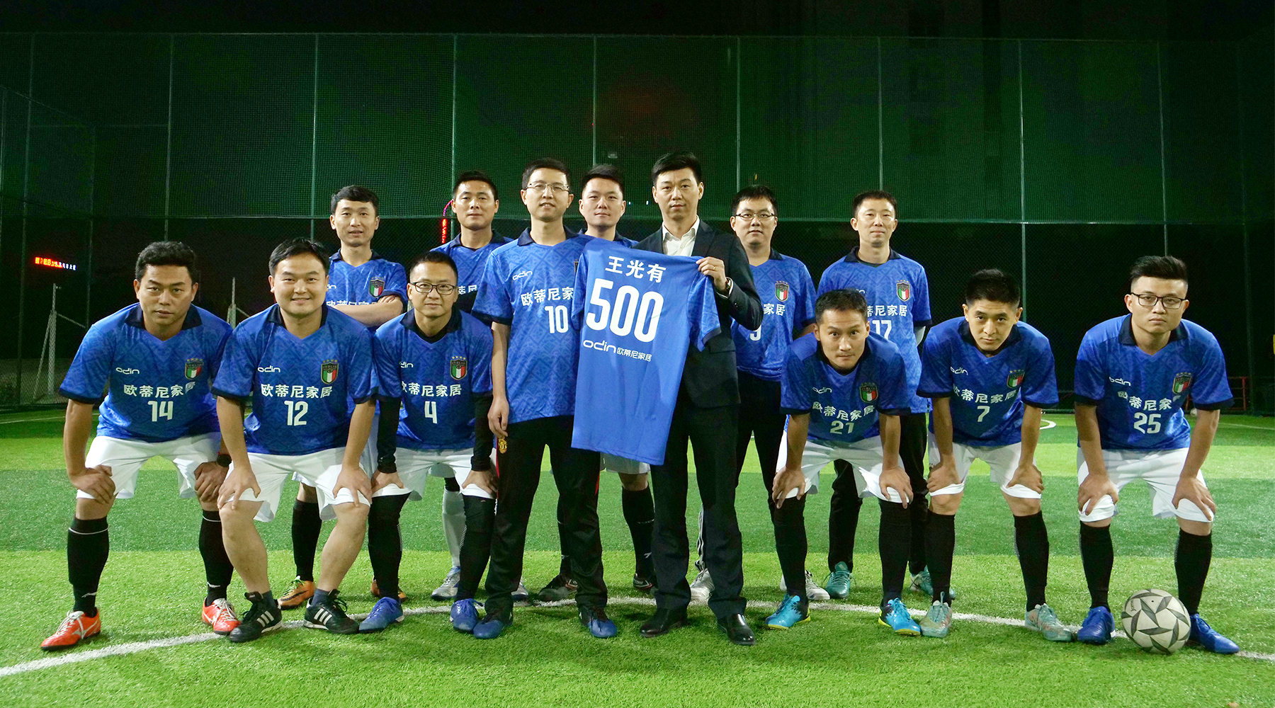 球衣既是一支隊(duì)伍的標(biāo)志,更是一支隊(duì)伍的靈魂。綠茵場上“500號(hào)球衣”就是一種榮譽(yù)、力量、技術(shù)和信心的體現(xiàn)。這正是歐蒂尼集團(tuán)董事長的球服,代表了歐蒂尼終端門店突破500家。