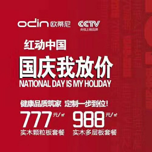 每年的十月一日是一年一度的國(guó)慶節(jié),是我們偉大祖國(guó)母親的生日。伴隨著風(fēng)風(fēng)雨雨,我們的母親祖國(guó)已經(jīng)70周歲了,在這個(gè)舉國(guó)歡慶的日子里,歐蒂尼全屋定制已經(jīng)展開(kāi)了“國(guó)慶我放價(jià)”的主題活動(dòng),這即將是今年活動(dòng)力度最大的一次優(yōu)惠活動(dòng)。